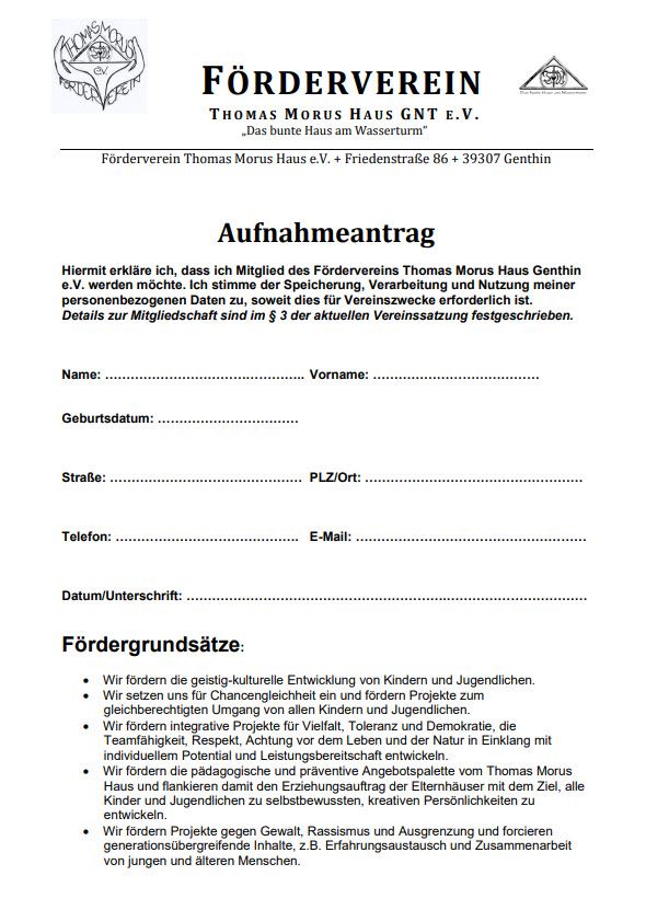 Sie sind hier: » Mitglied werden » Aufnahmeantrag